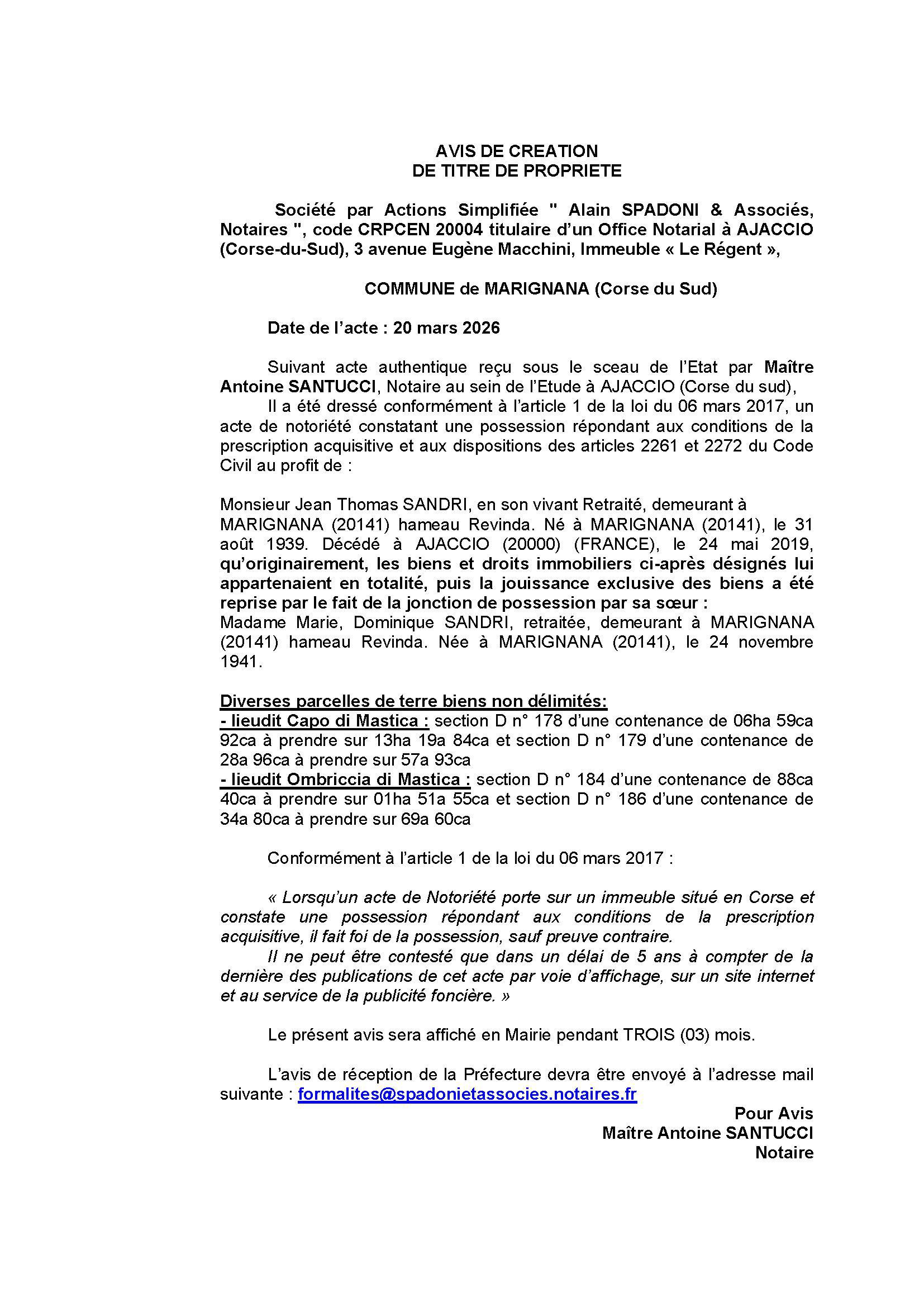Avis de création de titre de propriété - Commune de Marignana - Sandri.pdf