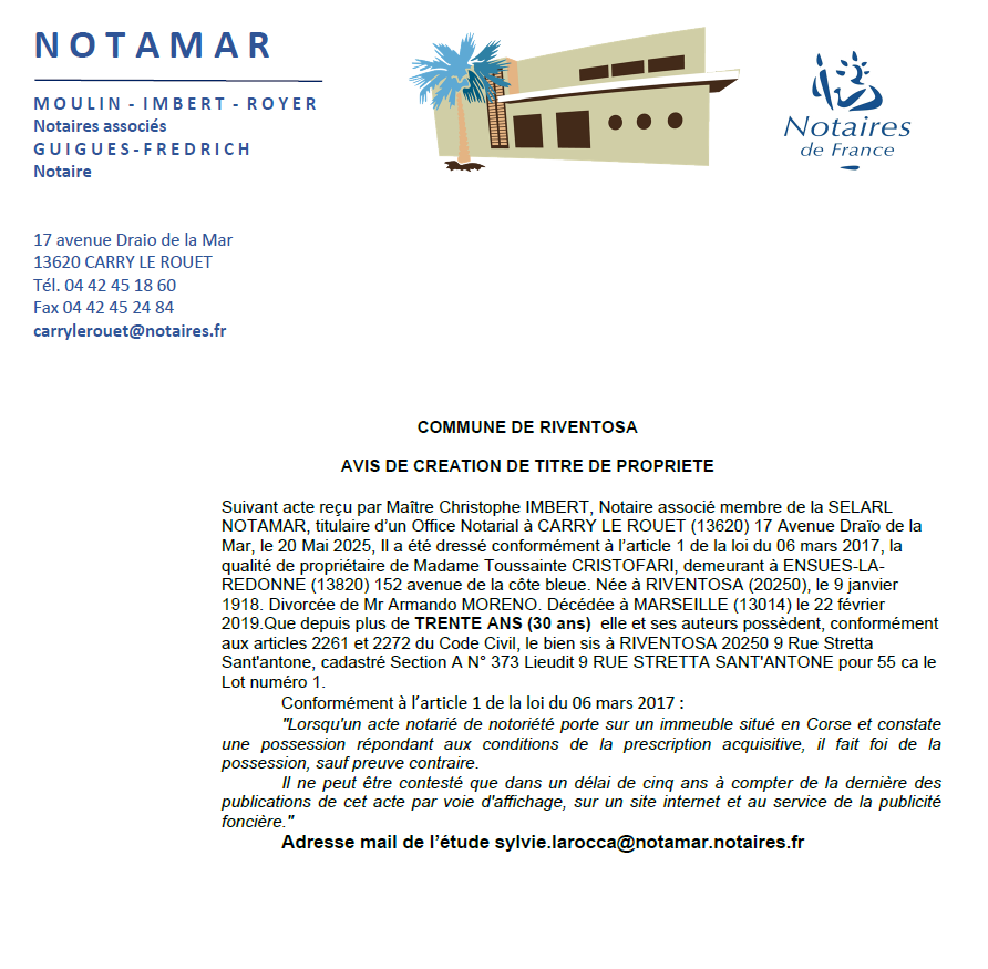 Avis de creation de titre de propriété - Commune de Riventosa - Moreno.pdf