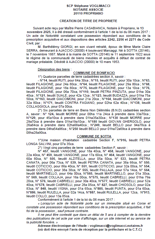 Avis de creation de titre de propriété - Communes de Bonifaziu et Sotta - Giorgi.pdf