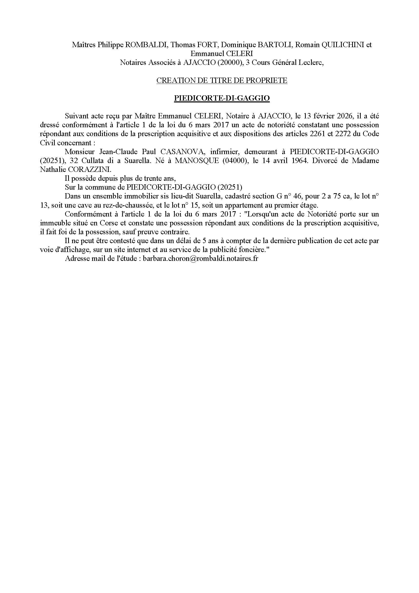 Avis de création de titre de propriété - Commune de Pedicorti di Caghju - Casanova.pdf
